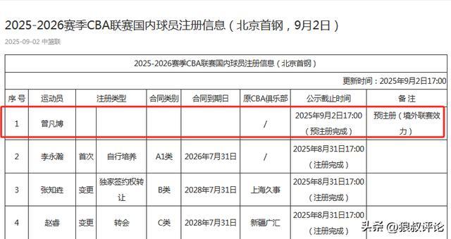 從目前的處境來看,曾凡博沒有足夠健康的身體狀態(tài),繼續(xù)沖擊NBA希望不大的情況下,返回CBA聯(lián)賽概率是相對比較大于其他可能性。原因比較簡單,北京男籃已經(jīng)對曾凡博進行了預(yù)注冊,25-26賽季12月份才正式開打。