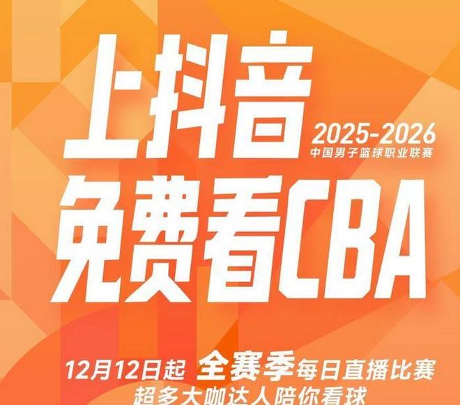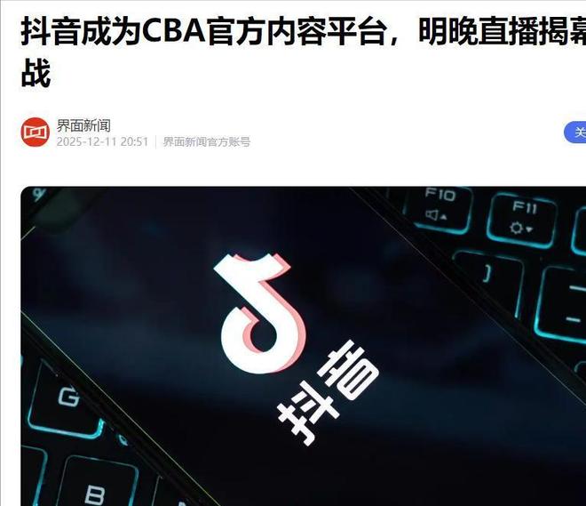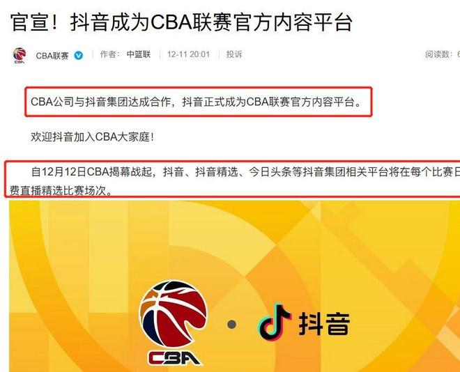 所以從12月12日晚間的CBA揭幕戰(zhàn)起,抖音集團(tuán)相關(guān)平臺(tái)如抖音、今日頭條等平臺(tái);