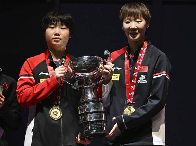 王曼昱/蒯曼組合在今年的世乒賽女雙決賽以3比0戰(zhàn)勝波爾卡諾娃/斯佐科斯奪得了冠軍。