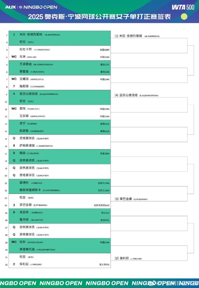 “小米辣”安德列娃、保利尼、萊巴金娜和亞歷山德洛娃作為前四種子亮相。王欣瑜&張帥領(lǐng)銜捍衛(wèi)中國(guó)金花榮譽(yù)。大滿貫冠軍得主拉杜卡努、萬(wàn)卓索娃、肯寧也將出戰(zhàn)。