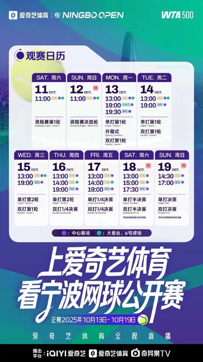 - 北京時(shí)間10月11日,愛(ài)奇藝體育將在10月13日起全程直播的WTA500寧波站正賽簽表出爐。 “小米辣”安德列娃、保...發(fā)表于: 10-13 02:37