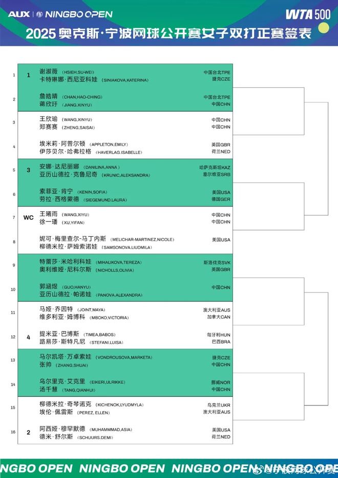 愛(ài)奇藝體育免費(fèi)直播!WTA500寧波站簽表出爐:王欣瑜袁悅首輪上演中國(guó)德比