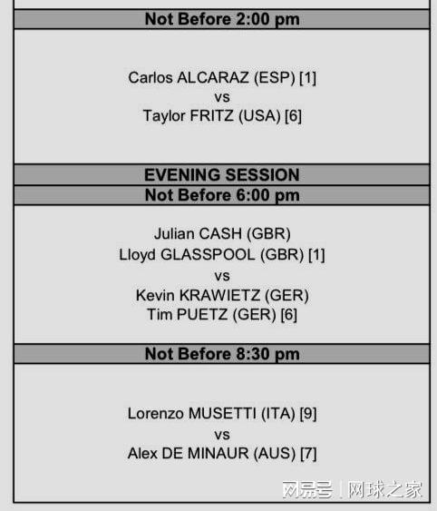 北京時間今晚,ATP年終總決賽將繼續(xù)進(jìn)行。單打賽場,美國二哥弗里茨將在21點(diǎn)左右出戰(zhàn),對陣頭號種子阿爾卡拉斯。另一場對決將在明天凌晨3點(diǎn)半左右進(jìn)行,由穆塞蒂vs德米納爾。