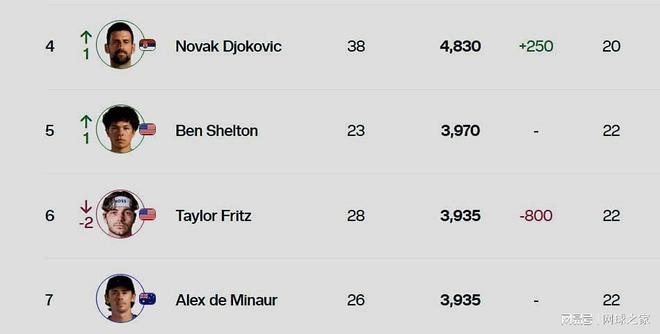 盡管弗里茨和辛納都相繼贏球,但是兩人在本周一都失去了自己的頭銜。弗里茨因?yàn)楸豢鄣袅巳ツ陙嗆姷?00個積分,世界排名下滑兩位,被同胞謝爾頓超越,由美國一哥變成了二哥。