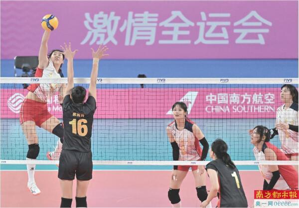 11月11日,江門進(jìn)行的排球女子20歲以下組小組賽A組比賽現(xiàn)場。