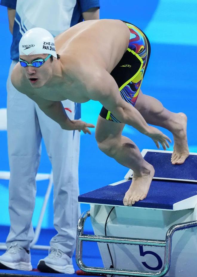 100米自由泳預賽中,第5組出場的潘展樂斬獲小組第一,游出49秒63,但成績低于福建隊的劉吳狄(49秒39)和山東隊的劉耀杰(49秒62),很顯然,潘展樂有所保留,半決賽中,潘展樂第2組出發(fā)游出48秒13,排名所有選手的第一位。