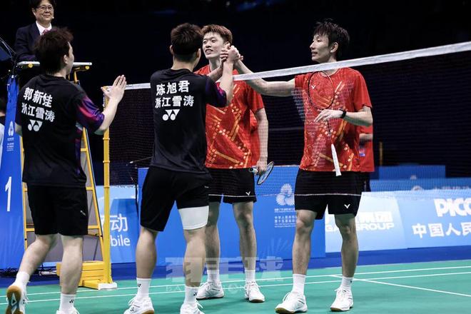 大比分2比2,此時(shí)時(shí)間已經(jīng)是14日晚上的11點(diǎn)30分,三單登場,由江蘇的孫飛翔對(duì)陣浙江的周新宇。這場比賽持續(xù)超過了一個(gè)小時(shí),最后在15日的0點(diǎn)40分時(shí),孫飛翔以21比17、21比12為隊(duì)伍贏得最后一分,江蘇隊(duì)由此大比分3比2艱難戰(zhàn)勝浙江隊(duì),自2009年后、時(shí)隔16年再度摘得全運(yùn)會(huì)羽毛球男團(tuán)金牌。浙江隊(duì)也創(chuàng)造了全運(yùn)會(huì)羽毛球男團(tuán)比賽的最好成績,以一枚沉甸甸的銀牌書寫了隊(duì)伍新成績。