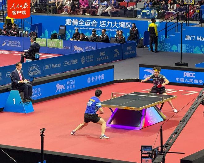 據(jù)人民日報客戶端消息,11月15日,十五運會乒乓球項目在澳門銀河綜藝館展開兩場男單半決賽爭奪。
