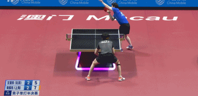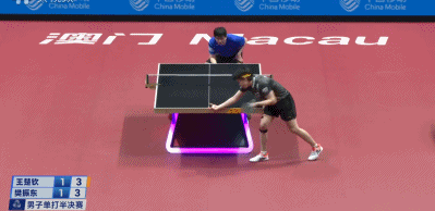但是王楚欽在發(fā)球環(huán)節(jié)給樊振東極大壓力——1比3,王楚欽發(fā)了一個(gè)臺(tái)角保護(hù)的半出臺(tái),樊振東一吊,被早等在位置的王楚欽一個(gè)倒地爆沖。