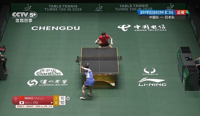 第二場女單比賽,王曼昱2-1戰(zhàn)勝伊藤美誠,三局比分為:12-10、10-12、11-2。中國隊大比分5-1領(lǐng)先。