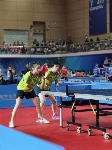 本報(bào)(chinatimes.net.cn)記者胡夢然 廣州攝影報(bào)道12月9日,全國第十二屆殘疾人運(yùn)動會暨第九屆特殊奧林匹克運(yùn)動會(下稱“殘?zhí)貖W會”)女子雙打TT10級銅牌爭奪戰(zhàn)中,甘肅隊(duì)的周迪奮與