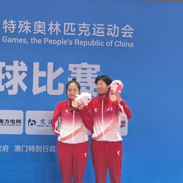 12月9日,全國第十二屆殘疾人運(yùn)動會暨第九屆特殊奧林匹克運(yùn)動會(下稱“殘?zhí)貖W會”)女子雙打TT10級銅牌爭奪戰(zhàn)中,甘肅隊(duì)的周迪奮與搭檔劉旭,經(jīng)過五局生死鏖戰(zhàn),以3:2險(xiǎn)勝廣東一團(tuán)的強(qiáng)勁對手。