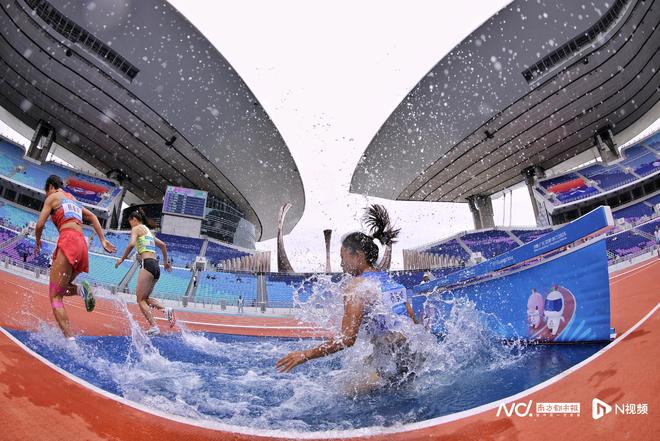 女子3000米障礙賽聽障決賽,遼寧運(yùn)動(dòng)員楊美萍跨越障礙落入水池的一刻。最終她獲得該項(xiàng)目銅牌。