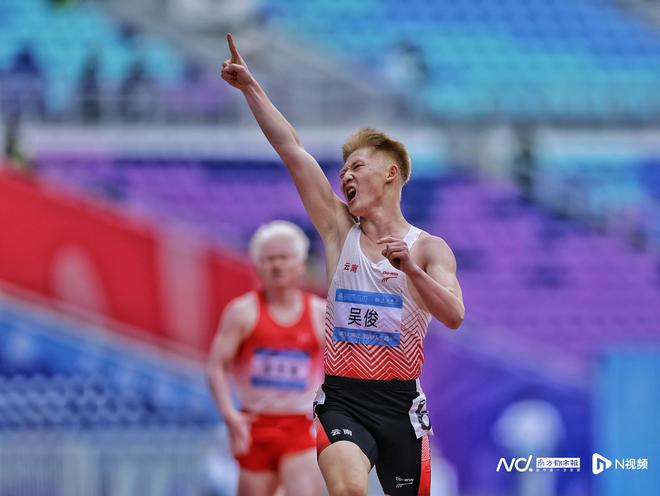 男子200米T13級(jí)決賽,云南運(yùn)動(dòng)員吳俊獲金牌,沖線一刻。