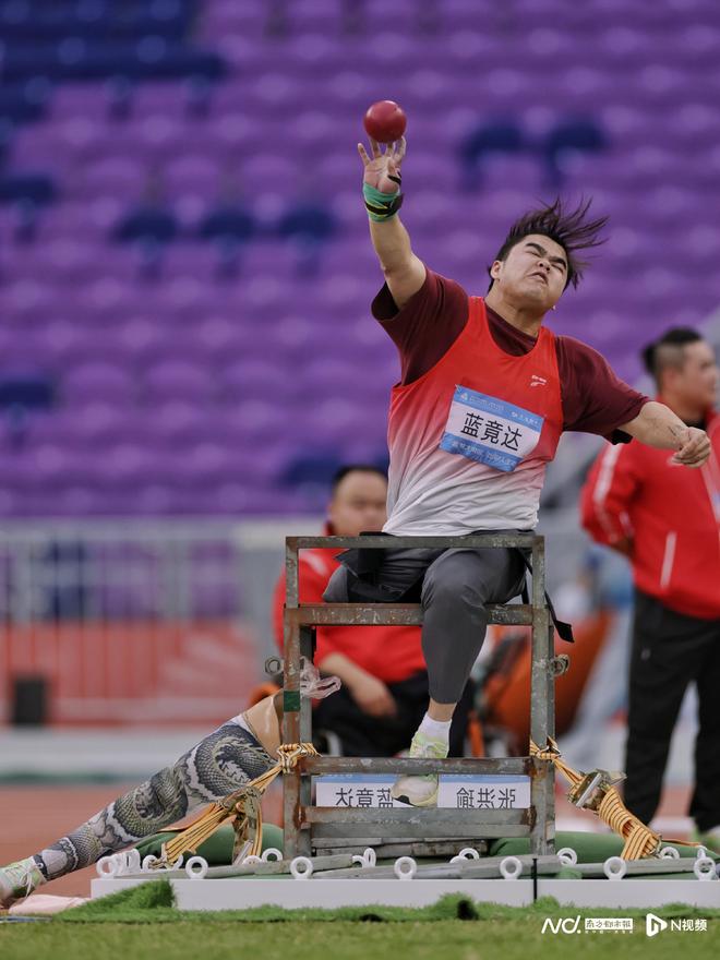 男子鉛球F57級(jí)決賽,廣西運(yùn)動(dòng)員藍(lán)竟達(dá)。