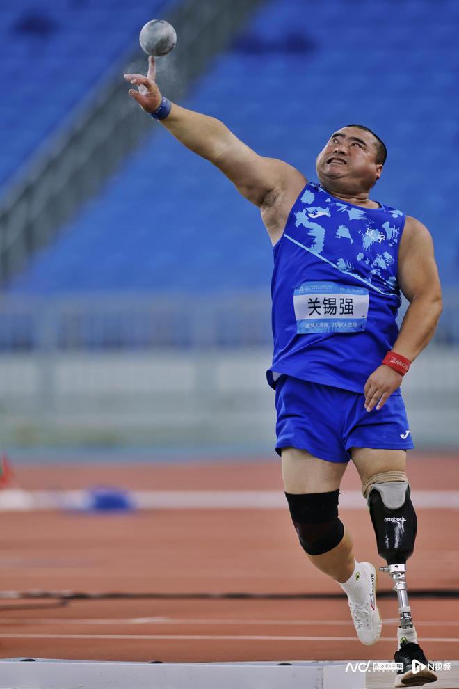 男子鉛球F64級(jí)決賽,遼寧運(yùn)動(dòng)員關(guān)錫強(qiáng)。