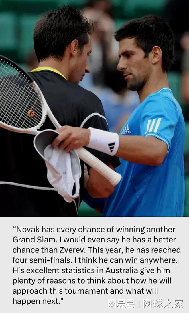 我們再來關(guān)注德約科維奇。近日,已經(jīng)退役的烏克蘭球員斯塔霍夫斯基在訪談節(jié)目中表示,他堅信德約科維奇能拿到大滿貫第25冠,而且認為目前的塞爾維亞人在大滿貫賽事中奪冠的機會大于世界第三、德國人小茲維列夫,“諾瓦克再拿一個大滿貫的機會非常大。我得說,他比茲維列夫拿到大滿貫的機會更大,他今年四大滿貫都打進了四強,所以我覺得他在哪里都能奪冠。他在澳大利亞的輝煌紀錄,讓他有充分理由去考慮備戰(zhàn)計劃,并對結(jié)果抱以期待?!?/p>