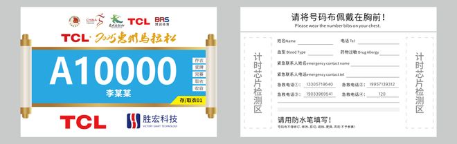 (注:比賽期間,參賽者的號碼布必須佩戴在容易看見的胸前位置,以便工作人員辨認(rèn)。)