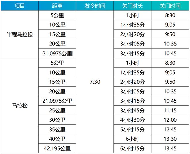 為了保證參賽選手比賽安全、順利,比賽期間比賽路線各段實(shí)行限時(shí)交通封閉,關(guān)門時(shí)間到后,相應(yīng)路段將逐段恢復(fù)開放社會交通。參賽選手在規(guī)定的關(guān)門時(shí)間內(nèi),未跑完對應(yīng)的距離者須立即停止比賽,退出賽道,以免發(fā)生危險(xiǎn)。退出比賽及被關(guān)門的選手可乘坐組委會提供的收容車到終點(diǎn)處,但無法獲得完賽獎(jiǎng)牌及成績證書。