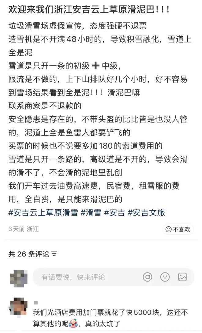 一網(wǎng)友表示,自己花了5000塊訂酒店、買門票,到了才發(fā)現(xiàn)是滑泥巴。(圖/小紅書截圖)