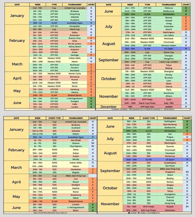 2026年ATP和WTA賽歷