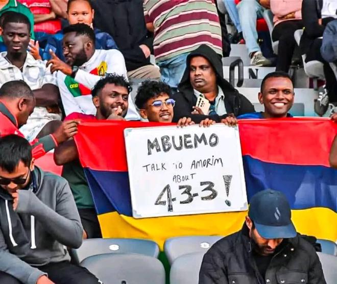 雷速體育10月9日宣 世界杯非洲區(qū)預(yù)選賽第9輪,喀麥隆客場2-0戰(zhàn)勝毛里求斯。在比賽看臺上,有毛里求斯球迷舉標語調(diào)侃效力于曼聯(lián)的喀麥隆前鋒姆伯莫和曼聯(lián)主帥阿莫林。