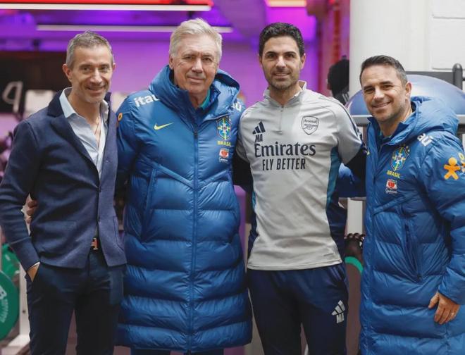 阿爾特塔和貝爾塔在倫敦會見了巴西主帥安切洛蒂。